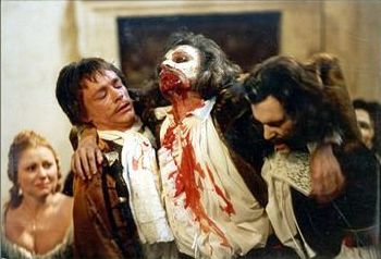 (ci-dessous les 2 photos de la scène de la mort de Molière, tournée dans l'escalier d'honneur)