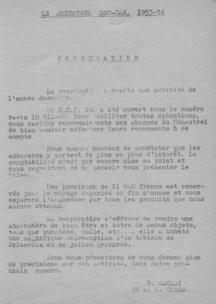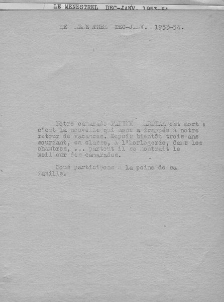 Le Menestrel d'octobre /novembre 1953